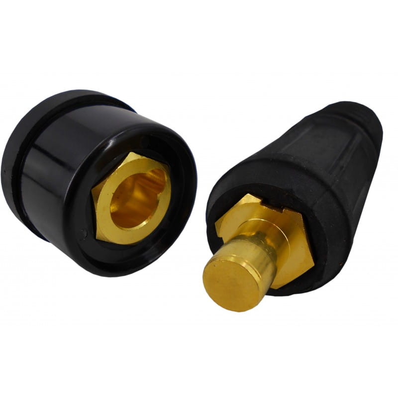 The set is used to connect welding cables. The universal ŁW / ŁP type cable plug is used for connecting welding cables to the welding machine. It is mounted on mass and current wires. The plug together with the aggregate socket guarantees reliable electrical connection of the cable to the welding device.
