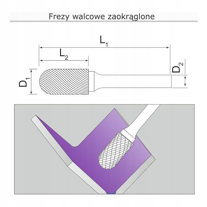 End mill with tungsten carbide working part for good cutting properties and long life. Cutters of other shapes, dimensions and designs are available.