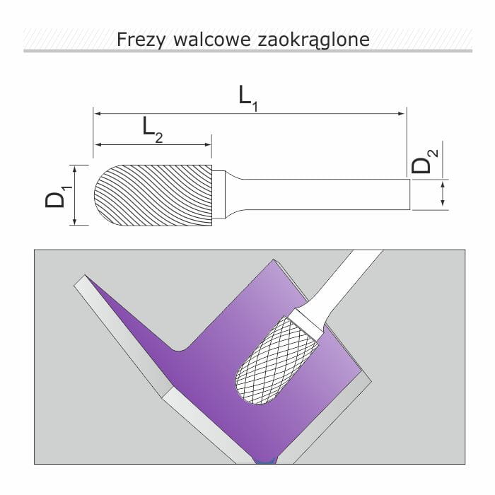 End mill with tungsten carbide working part for good cutting properties and long life.