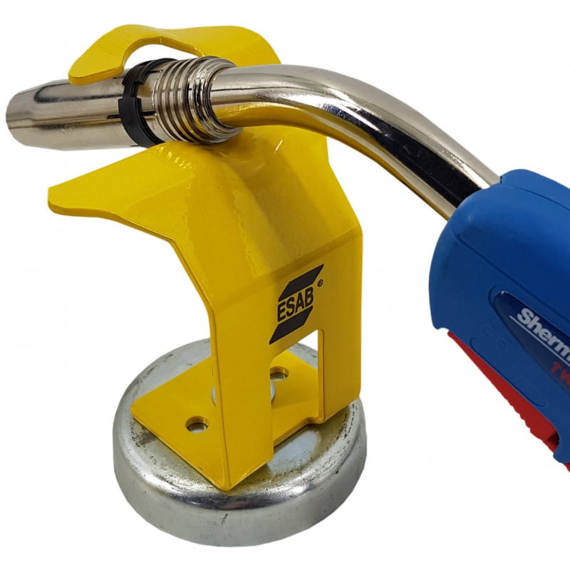 Handle for conveniently supporting the MIG gun when not in use. Simple and practical to use. Equipped with a magnetic base that ensures stability.
