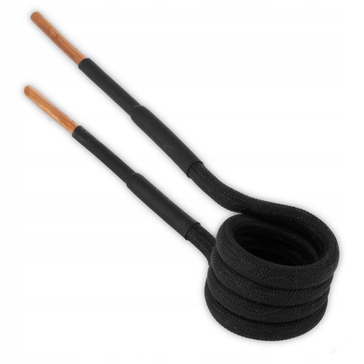 A 17mm diameter spiral heating coil in a black braid for induction heaters.