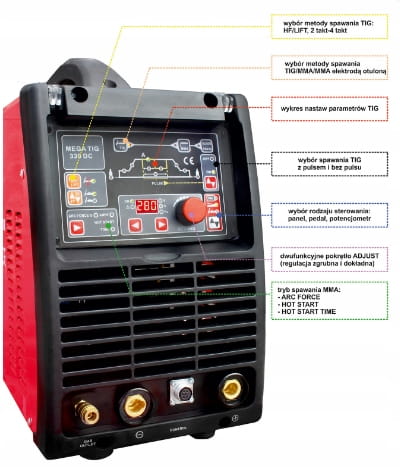 - TIG DC PULS lift-arc - the arc is ignited by contacting the electrode with the material being welded, the pulse function allows welding of thin elements through periodic changes in current intensity.