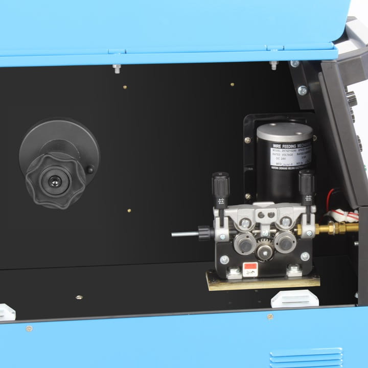 It is equipped with a professional 4-roll wire feeder with smooth regulation of the feed speed.