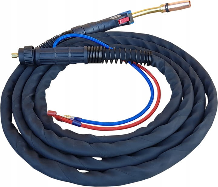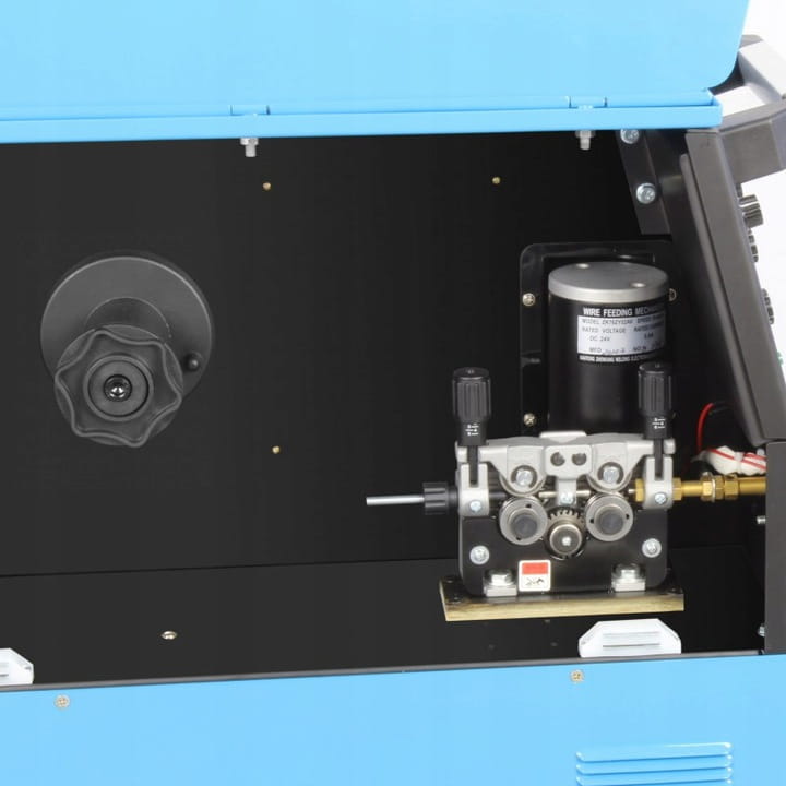 The MIG 450M welder is powered from a 3x400V three-phase network and works with D200 (5 kg) and D300 (15 kg) wire spools. The device is equipped with an integrated radiator and a liquid-cooled MIG / MAG welding holder.