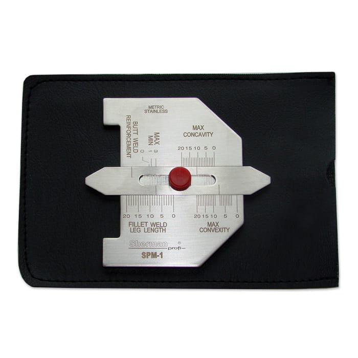 The SPM-1 fillet gauge is used to measure the height of a butt weld as well as the height, thickness and depression of a fillet weld.