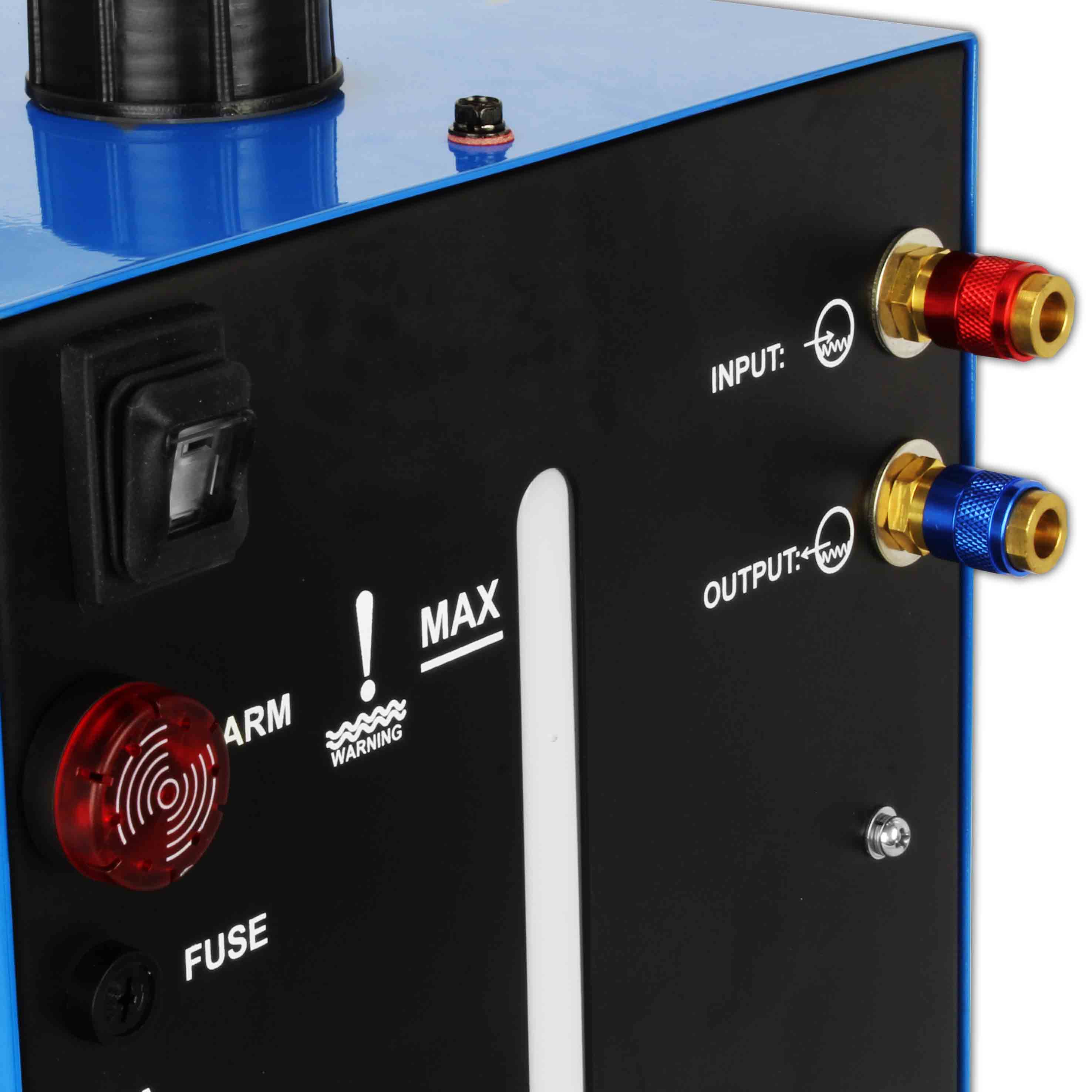 The device is equipped with a coolant flow sensor. In the event of no or too low liquid flow, an audible alarm will sound and the ALARM diode on the front panel will flash. In this case, stop work immediately and remove the cause of the alarm.