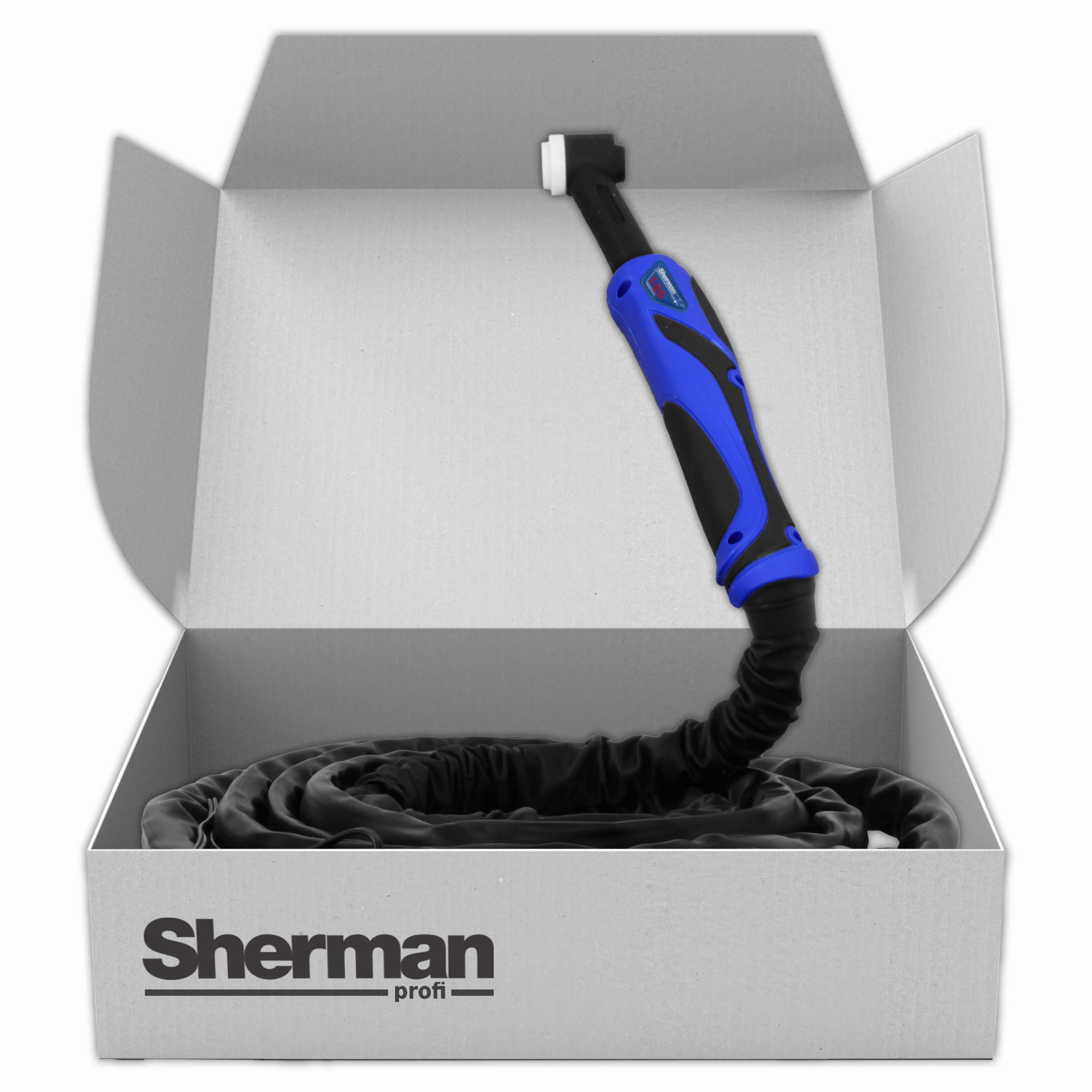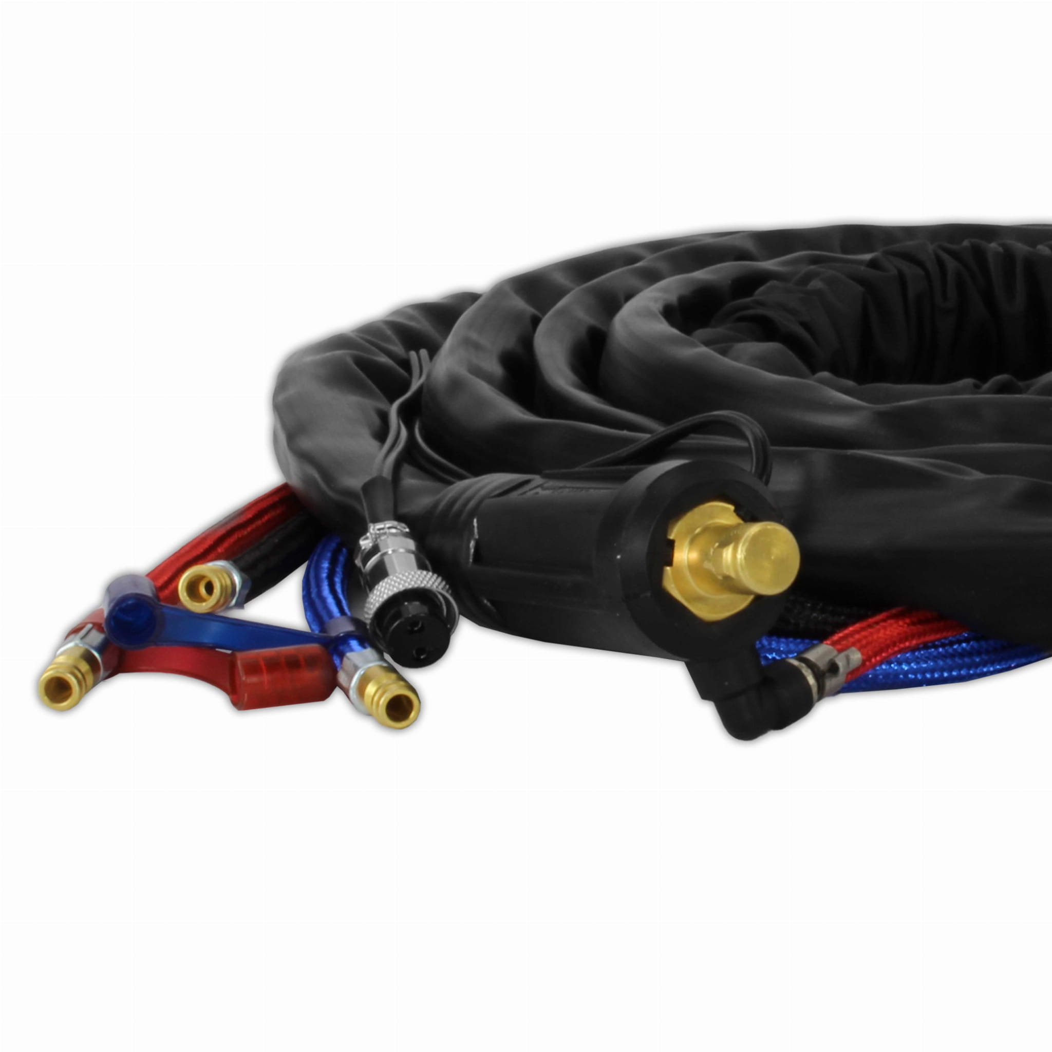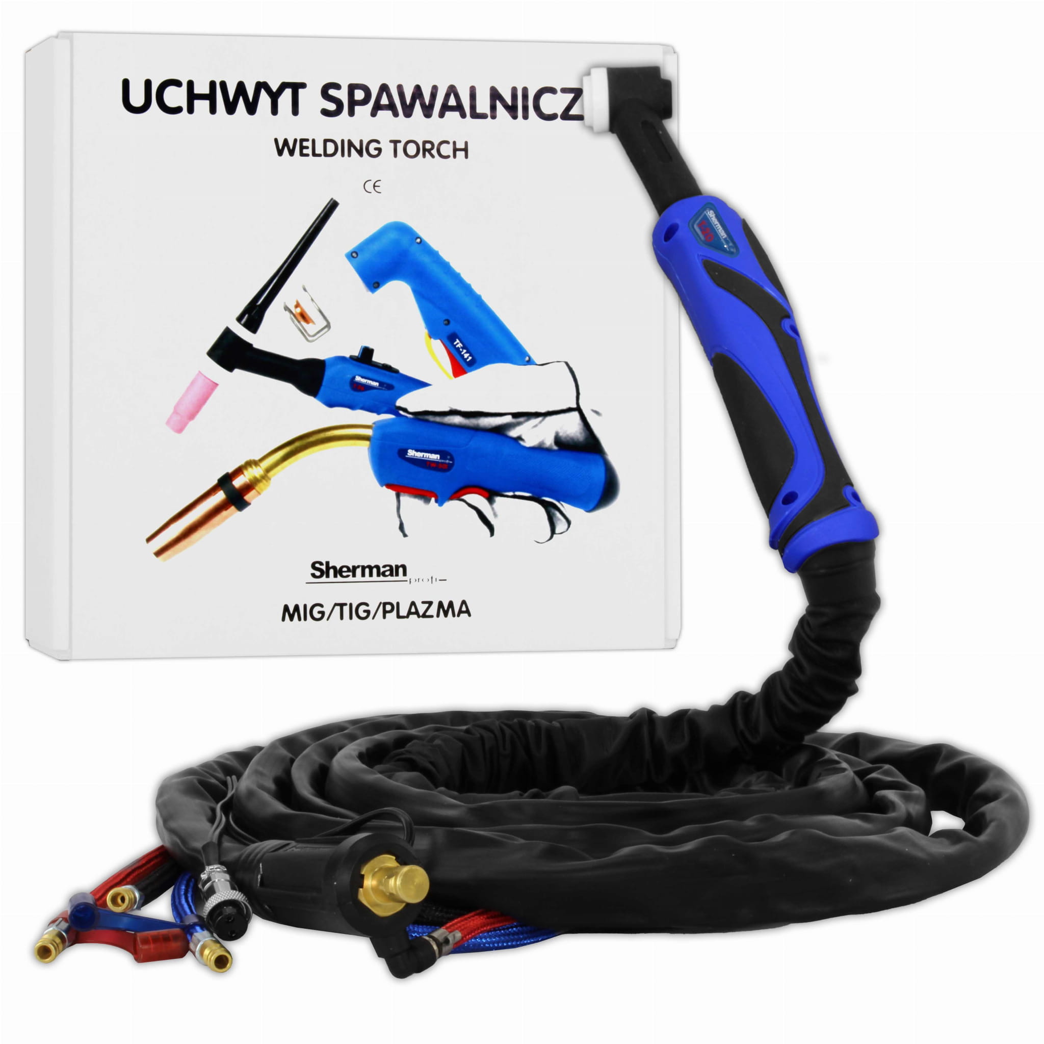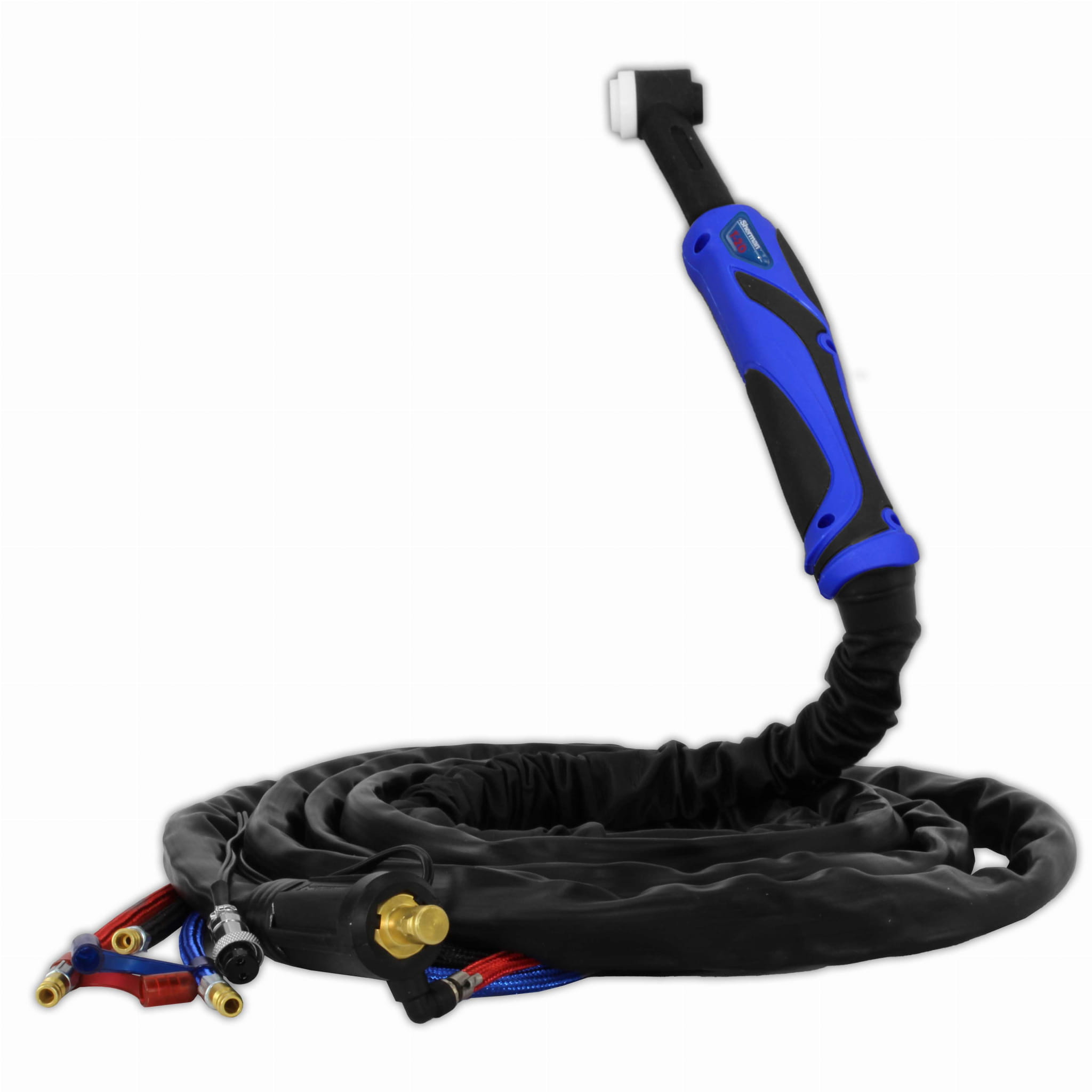 The T-20 welding torch (with rigid burner head) is a liquid cooled holder for TIG welding (non-consumable electrode).