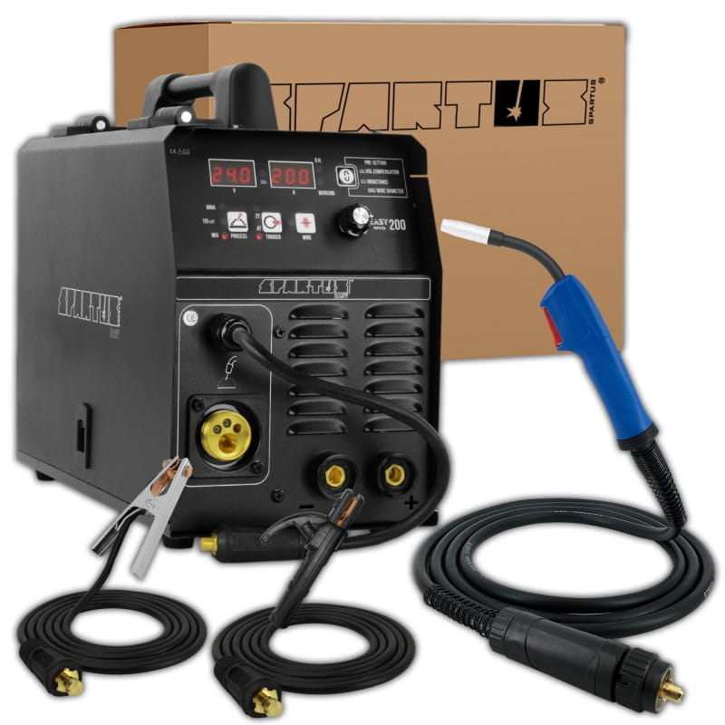 SPARTUS® EasyMIG 200 is a semi-automatic welding machine made in inverter technology. It enables welding with inert and active gases (MIG / MAG), coated electrode (MMA) and TIG Lift with arc ignition by rubbing. Easy polarity change allows welding with self-shielding wire without gas.
