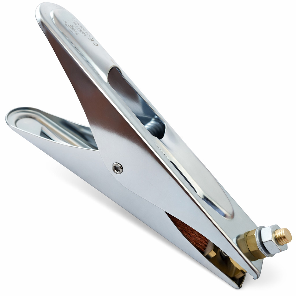 The clamp design allows for easy attachment to the workpiece, while the materials used provide proper electrical conductivity and durability during intensive use.