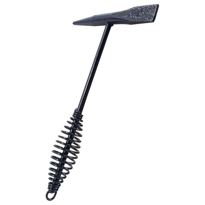 A simple hammer for slagging and slag welding. The spring-loaded handle increases the impact force.