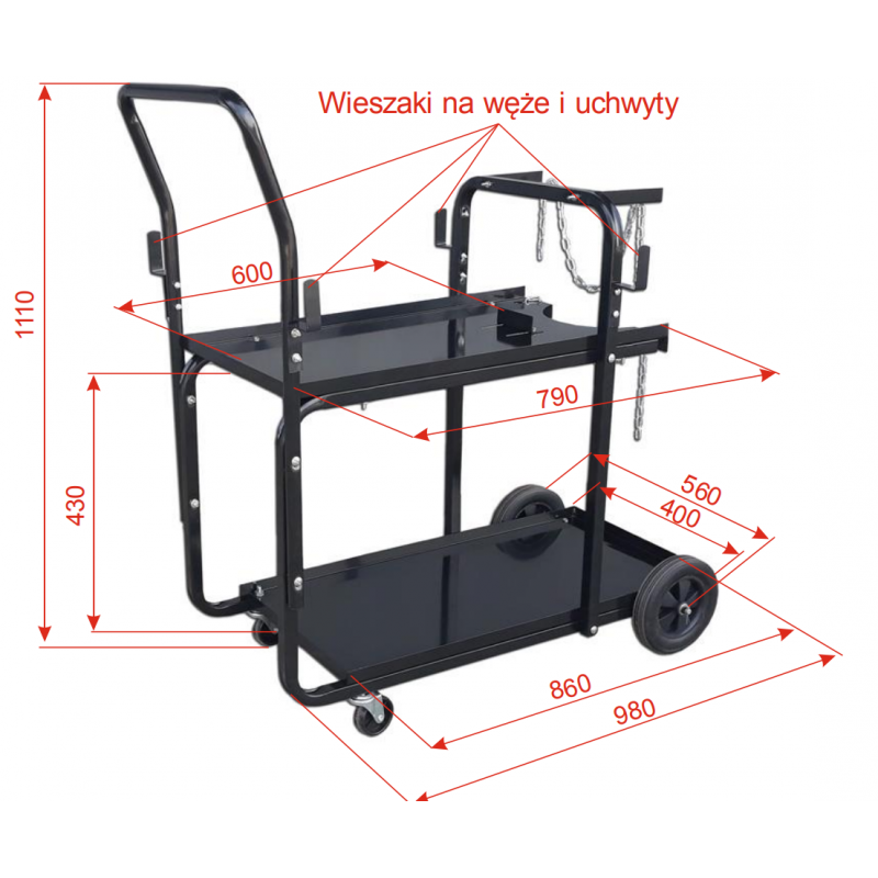 Light load-bearing structure designed for transporting TIG, MIG or plasma welding sources with accompanying devices such as: cooler or wire feeder and gas cylinder.