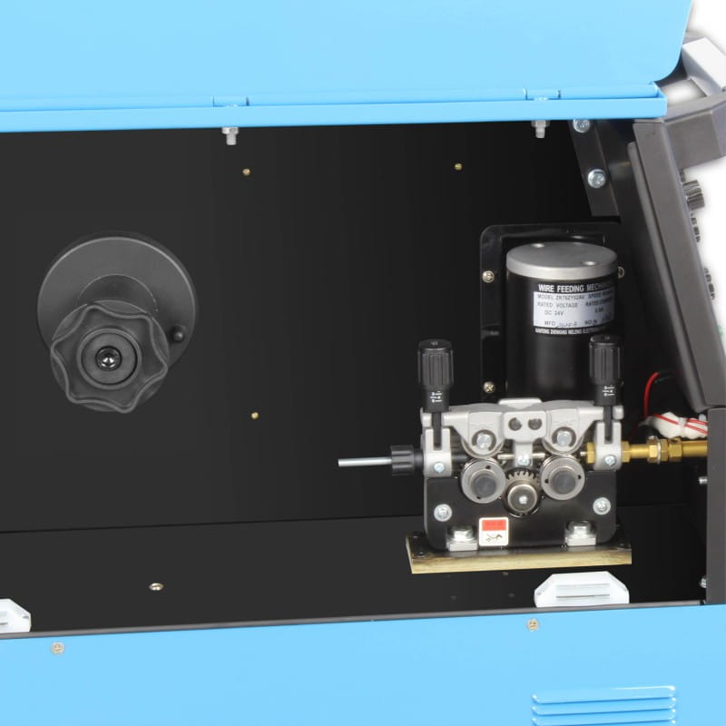 Alumiinipainevalusta valmistettu ammattimainen syöttölaite, jossa on tehokas moottori, takaa vakaan langansyötön ilman jumiutumista. Se on varustettu neljällä vetävällä rullalla.
